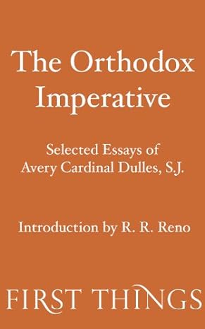 The Orthodox Imperative: Selected Essays of Avery Cardinal Dulles, S.J. by Avery Dulles (Author), R.R. Reno (Introduction). First Things Press (July 15, 2012) The authority of Fr. Avery Dulles, S.J., in the American Catholic Church was substantial. When Pope John Paul II elevated him to the rank of Cardinal late in life, he put a red hat on a widely acknowledged wise head. To read Dulles is to hear the voice of mainstream contemporary Catholicism: confident without being defensive, convinced without being parochial, and clear-minded about the need for hard thinking about what the Church has always taught and must continue to teach in our postmodern age.